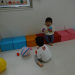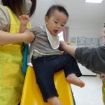 2歳児さんは遊びの合間に0歳児クラスのお部屋に