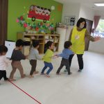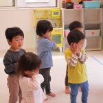 歩いたり、止まったり、ポーズをとるリズム遊びはいつもは