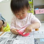 ポンポンと押す子、ぬりぬり~と塗り広げる子、個性が出ますね(*‘∀‘)