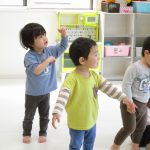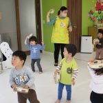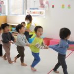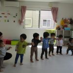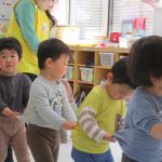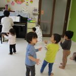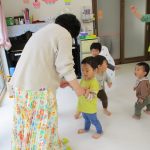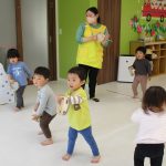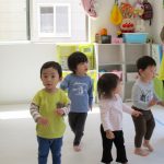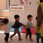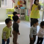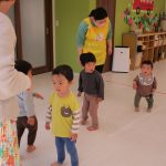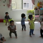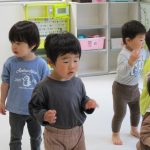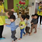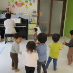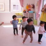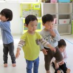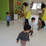 歩いたり、止まったり、ポーズをとるリズム遊びはいつもは