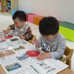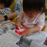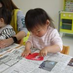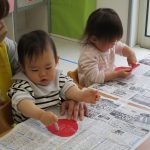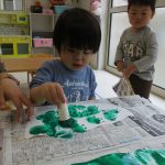 ポンポンと押す子、ぬりぬり~と塗り広げる子、個性が出ますね(*‘∀‘)