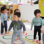 最後は先生と手を繋いで回ったり、鉄棒にぶら下がっておサルさんになったり、