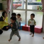 1歳児さんの小さいお友達もつかまって歩いたり、よちよちと歩いたり