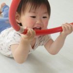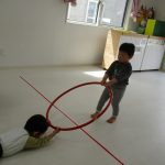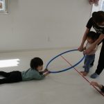 フラフープにつかまって引っ張ってもらうのも大喜びです。