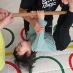 最後は先生と手を繋いで回ったり、鉄棒にぶら下がっておサルさんになったり、