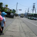 国道を通ると向こうにバスが止まっていて、