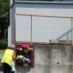隣りのお家のおじさんが作ってくれたベンチの後ろに