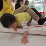 じゃがいもをイメージしてマットの上を転がり、