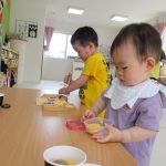 今日はお部屋で過ごし、2歳児さんに何をして遊びたいか