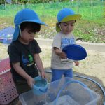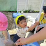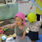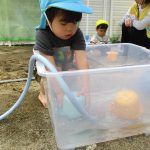 0・1歳児さんのお友達は水の溜まっている