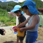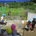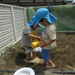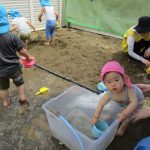 砂遊びに水も準備して遊びました!!