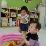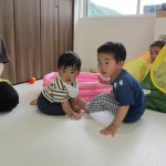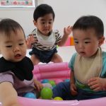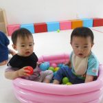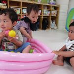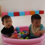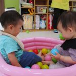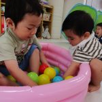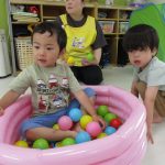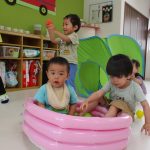 小さいプールなので2歳児さんは1人ずつしか入れず、