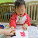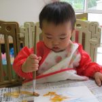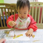 1歳児さんも2歳児さんもどんな作品が完成するか