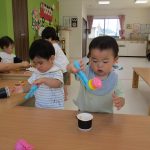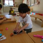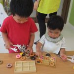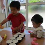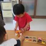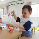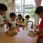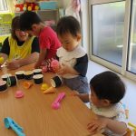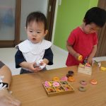2歳児さんは先生と会話をしながらお店屋さんごっこを