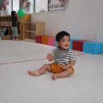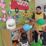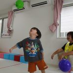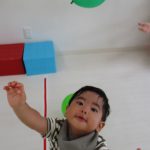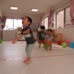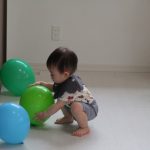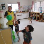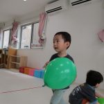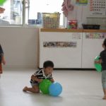 風船を追いかけたりして遊ぶ0・1歳児さん、