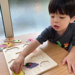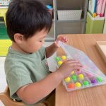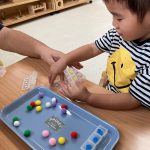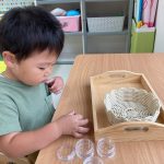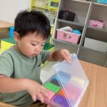 一つの教具にじっくり取り組むお友達、