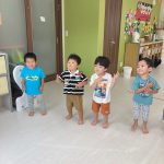 「幸せなら手をたたこう」のお歌を歌いながら