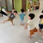 季節のお歌を歌ったり、リズム遊びをして体を