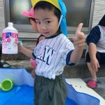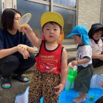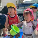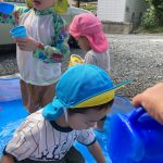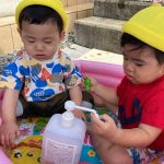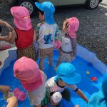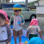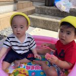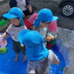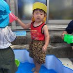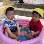0歳児の新入児さん二人は初めてのプール遊び
