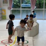 今日はお外に行けないので保育室で運動遊びをして身体を動かしました🌟
