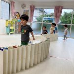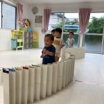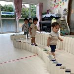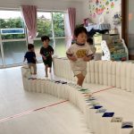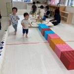 0歳児さんは積木も押して歩けるようになり、押して遊んでいました🌟