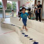 牛乳パックで作ったじゃばらの道を走って