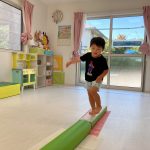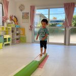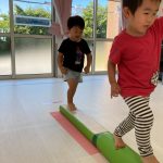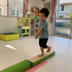 後半は平均台を積木の1本橋に変えて変化を付けて