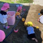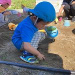 お砂場に行くとシャベルやバケツ、カップなど