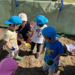 まだ残っていて、砂遊びもしながら野菜に触れる