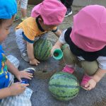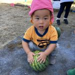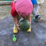 大小のすいかを持ってきて見せると興味津々で