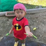 2歳児さんは玩具のお皿を持ってきて、