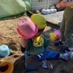 2歳児さんはお友達と一緒に大きなお山を作ったり、