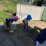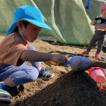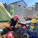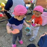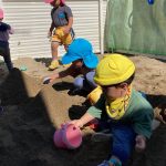 2歳児さんはお友達と一緒に大きなお山を作ったり、