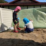 戸外遊び後半は砂場に移動して、砂遊びをしました!!