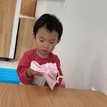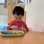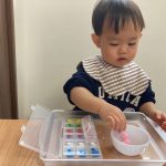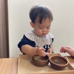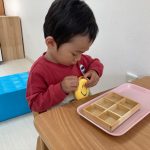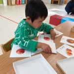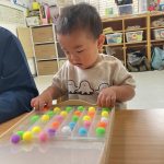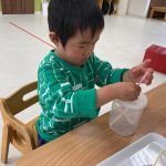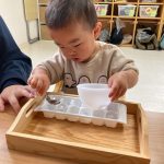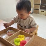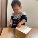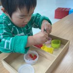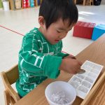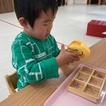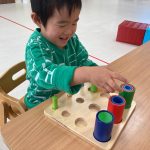 今日は室内で過ごし、モンテッソーリ教具を使って
