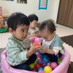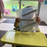 1歳児さんは教具を運ぶ時、落としてしまうことも