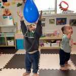風船、鈴を吊るして引っ張ったり触ったり