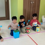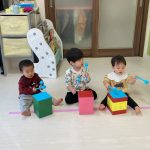 今日は室内で過ごし、0・1・2歳児さん合同で