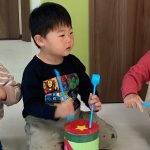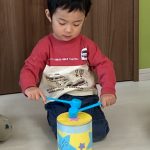 「山の音楽家」では1・2歳児さんは手作り太鼓、