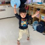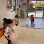 風船を投げたり蹴ったり追い掛けたり・・・