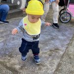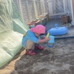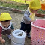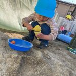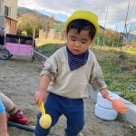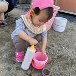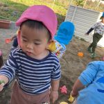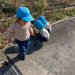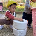 見つけて拾い、2歳児さんのお友達は