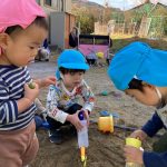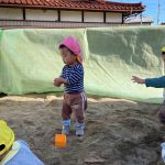 今日は0・1・2歳児さんみんなで戸外遊びを