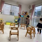 低月齢の0歳児さんもイスに座って輪に入り、気分はイスとりゲームでした(^^)