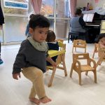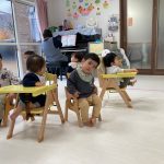 0歳児さんの高月齢のお友達もなんとなくルールがわかってピアノが止まると空いている