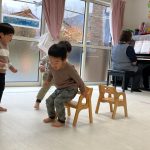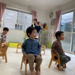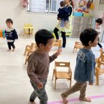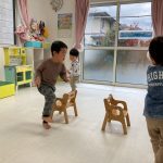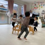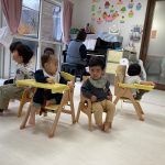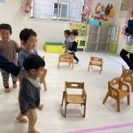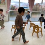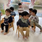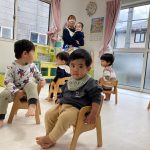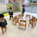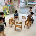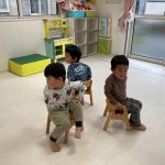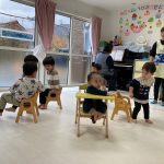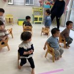 低月齢の0歳児さんもイスに座って輪に入り、気分はイスとりゲームでした(^^)
