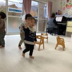 0歳児さんの高月齢のお友達もなんとなくルールがわかってピアノが止まると空いている