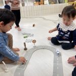 道路遊びは2歳児さんを中心に組み立てて今日は標識も立てると
