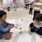 その後は、ぬいぐるみのねんねごっこと道路での車遊びをして遊びました!