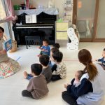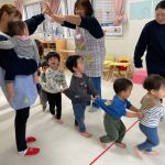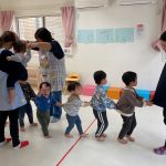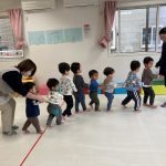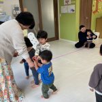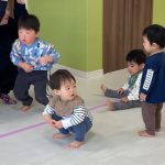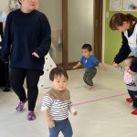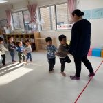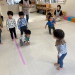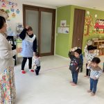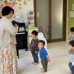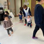 ピアノのリズムに合わせて歩き、早歩きをしたり