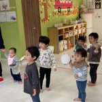 リズムに合わせてタンバリン→タンバリン→手をたたく